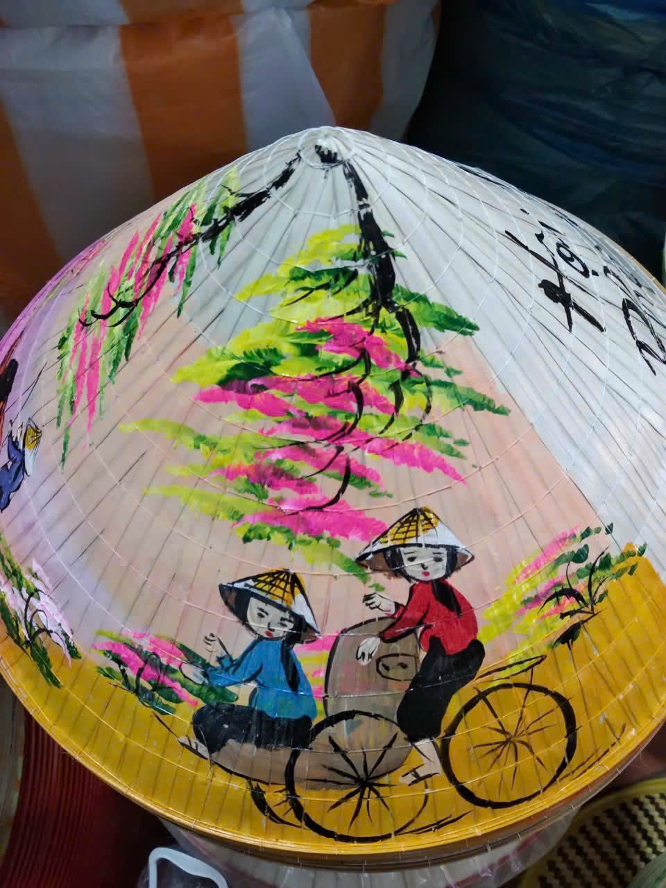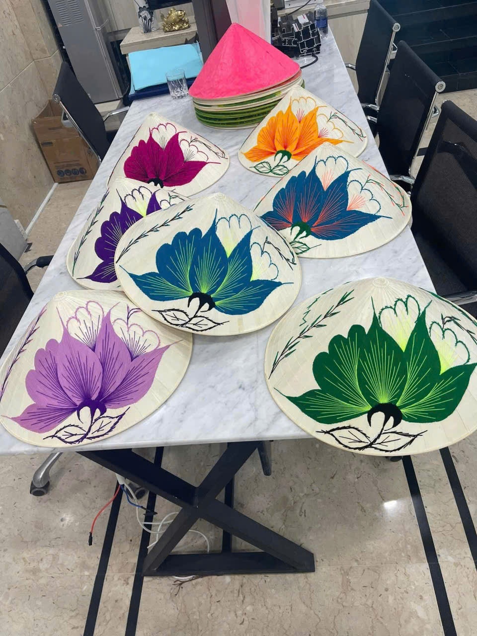Our hand-painted conical hats are selected from traditional craft villages, carefully ensuring high-quality materials and perfect form. The manufacturing process demands attention to detail in every brushstroke, making each hat a work of art. This allows for flexible production, maintaining the quality of the hand-crafted design.